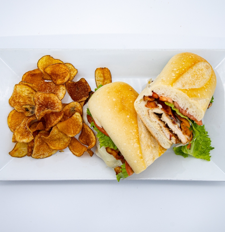 Grilled chicken, bacon, lettuce, tomato, melted provolone, and mayo