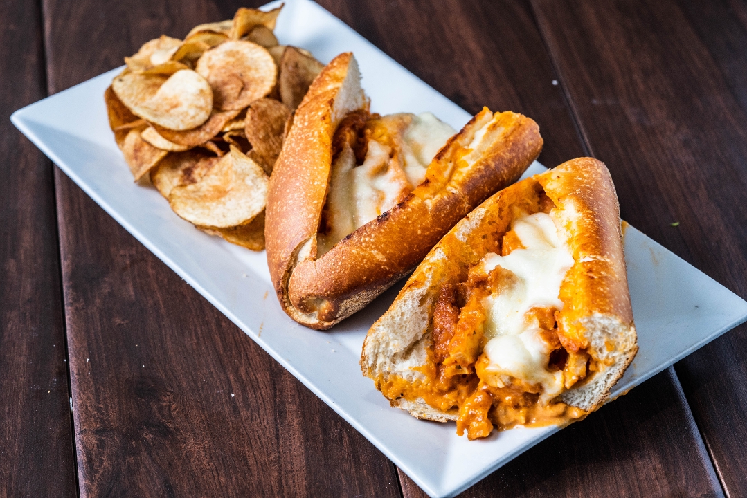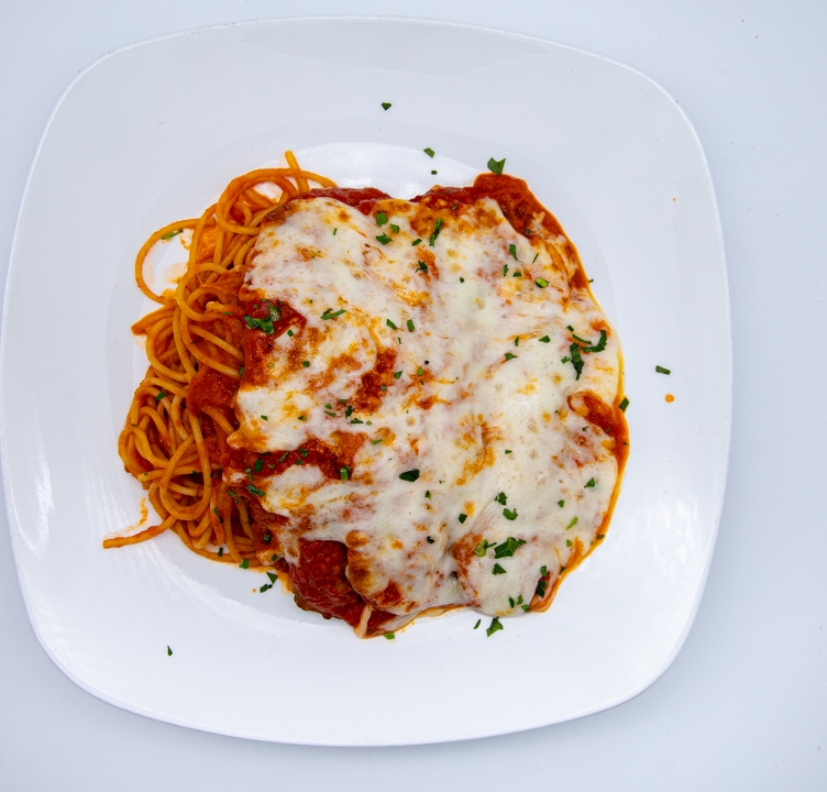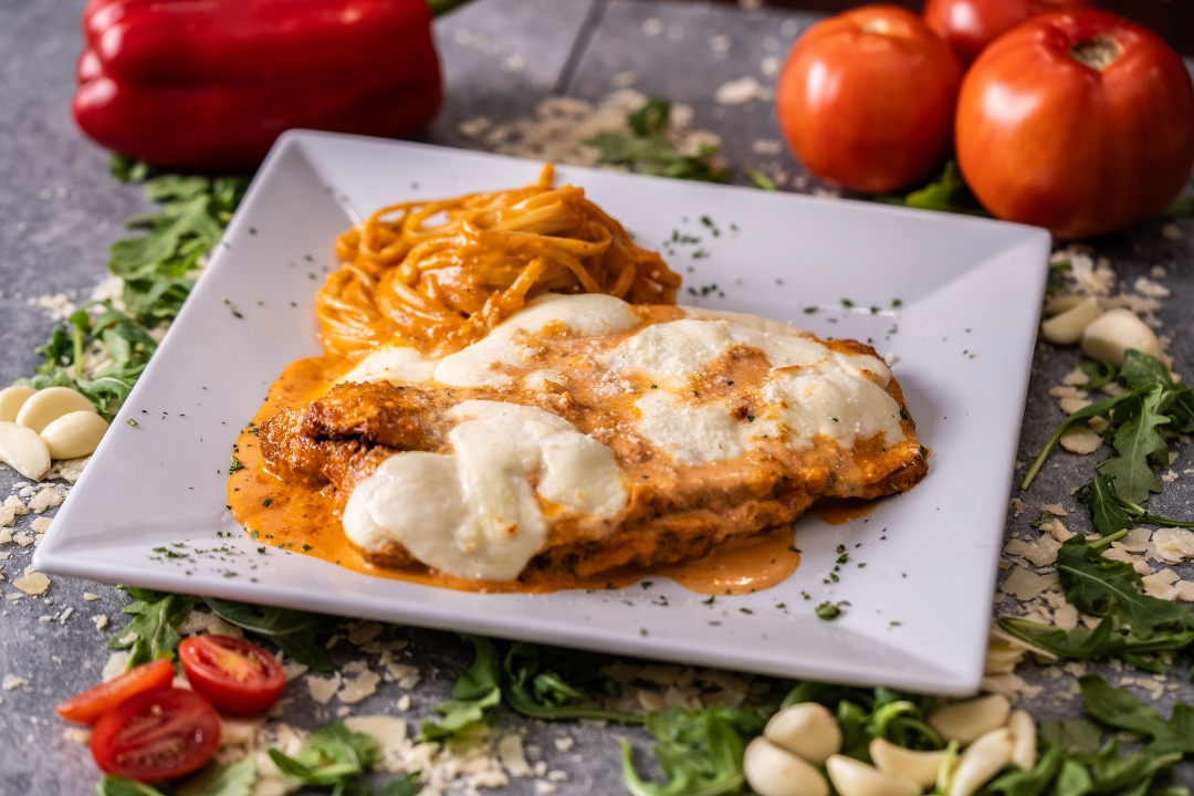 Chicken cutlet, breaded eggplant and fresh mozzarella. Baked and served over linguini in vodka sauce