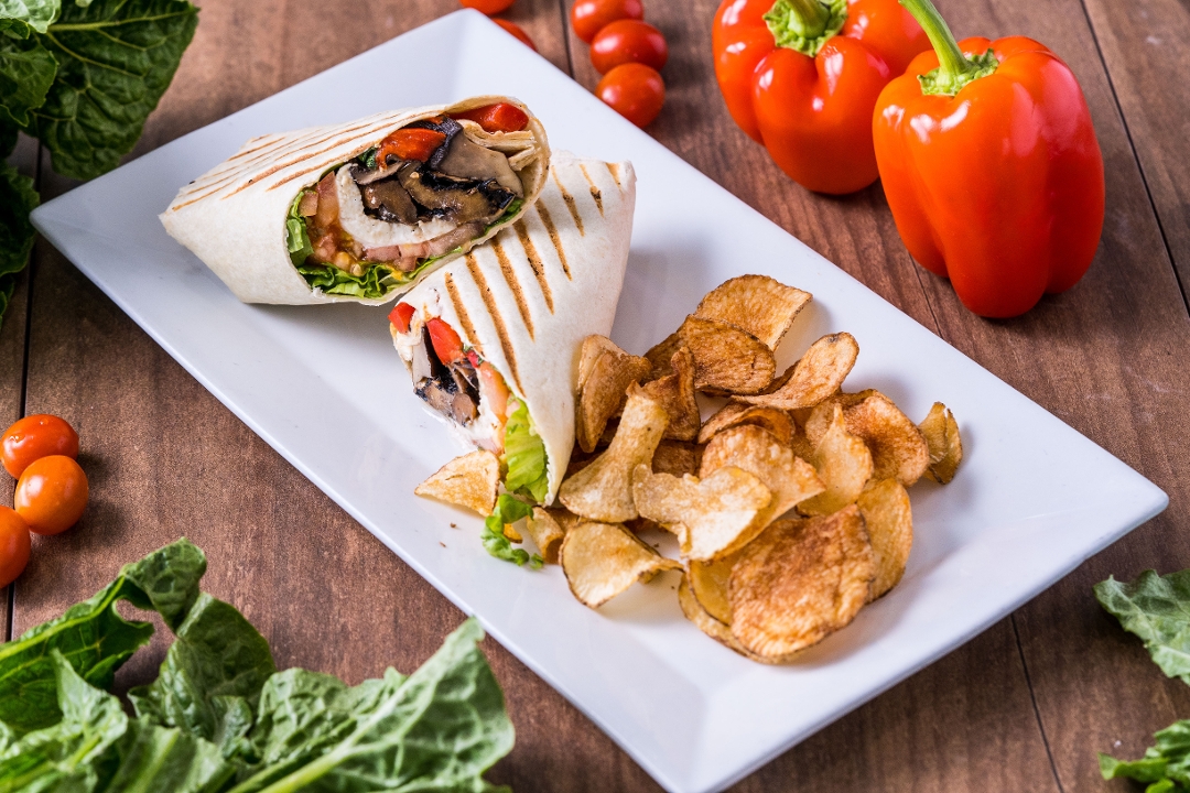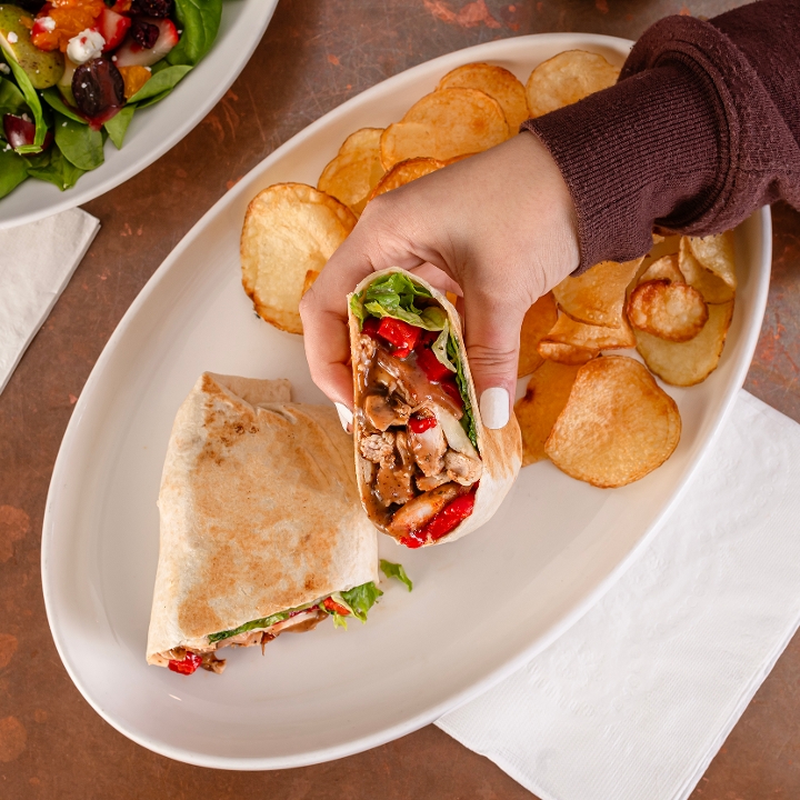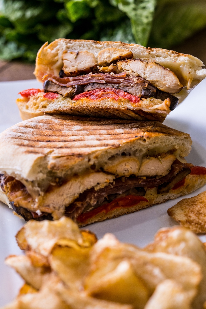 Grilled chicken, portobello mushrooms, roasted peppers, provolone cheese, and balsamic vinaigrette