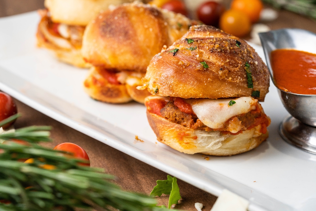 Hot roast beef, gravy, and fresh mozzarella cheese