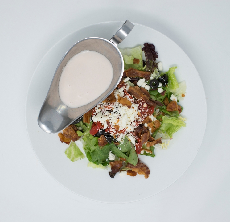 Mixed greens, olives, feta cheese, bacon, roasted peppers, and balsamic vinaigrette