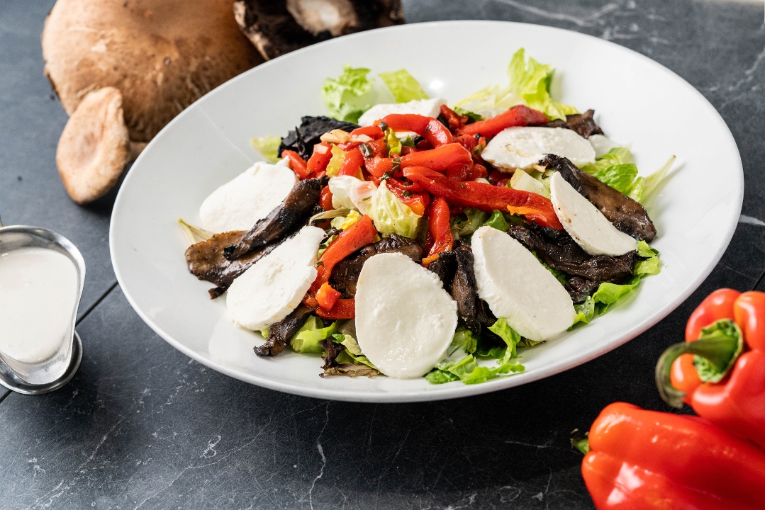 Mixed greens, portobello mushrooms, fresh mozzarella, roasted peppers, and blue cheese vinaigrette