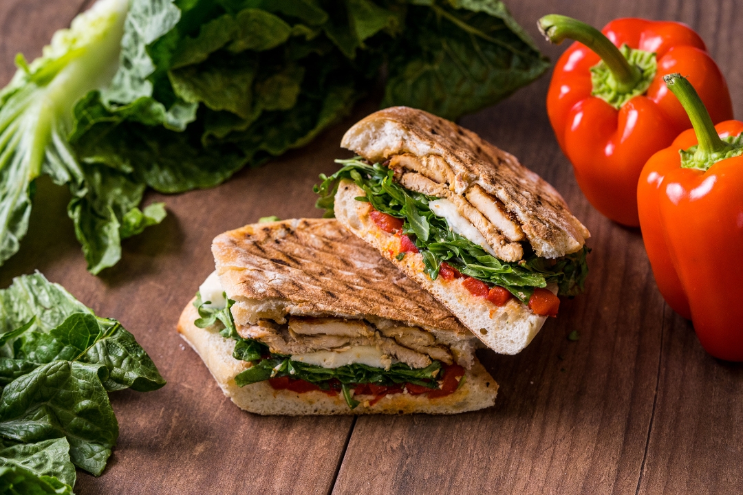 Grilled chicken, prosciutto, roasted peppers, grilled eggplants, provolone cheese, and pesto mayo