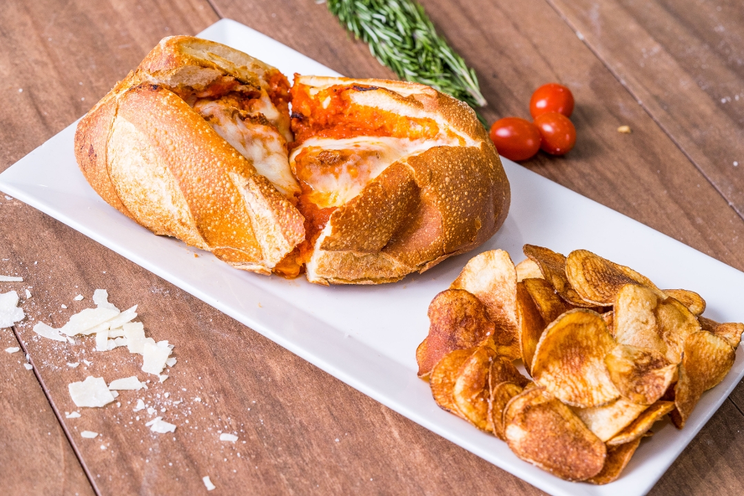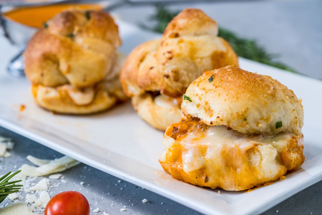 Stuffed with ground beef, cheese and peas, served with sauce. Make Parmesan