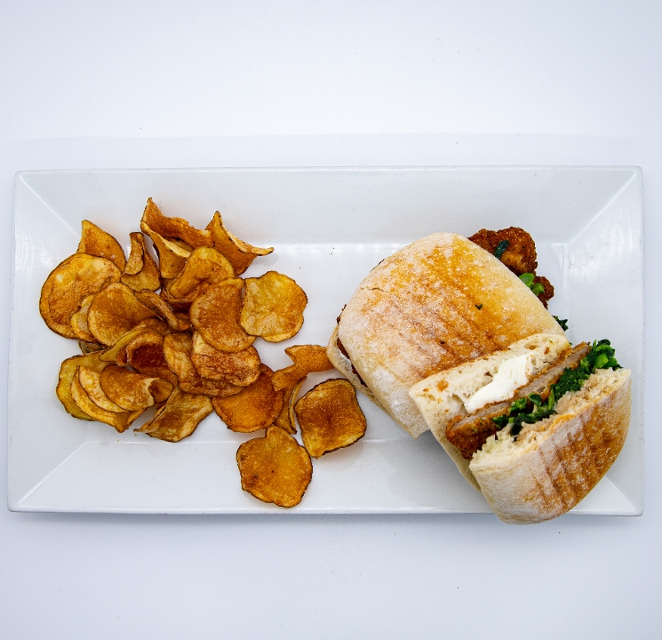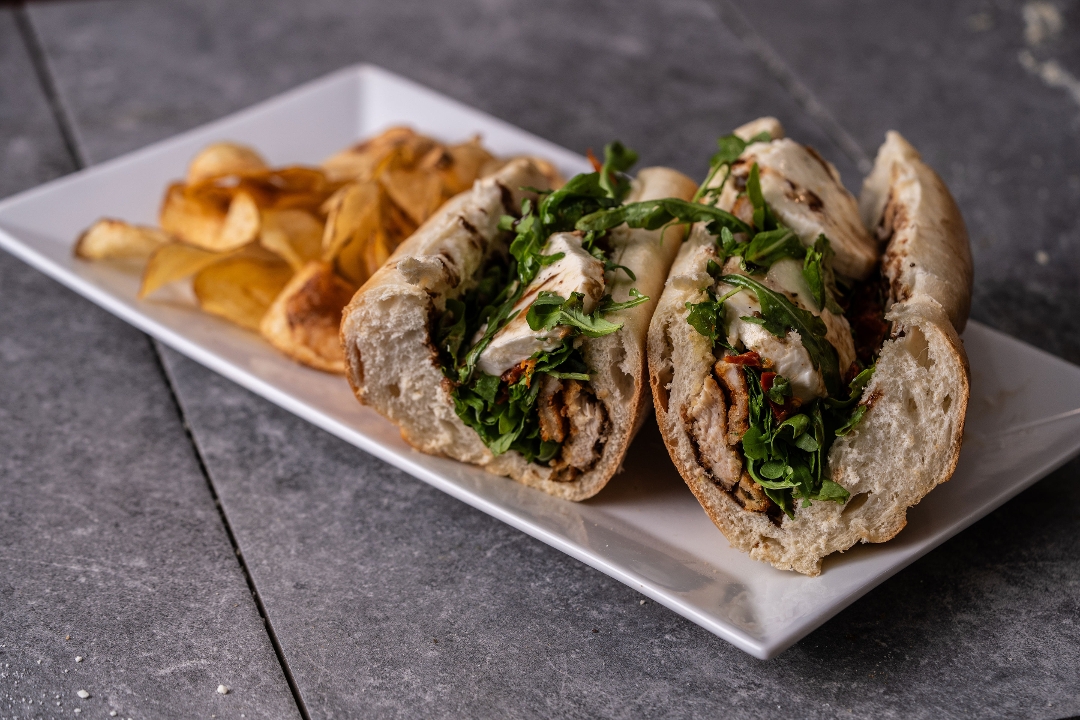 Breaded chicken, sun dried tomatoes, arugula, fresh mozzarella, evoo, and balsamic glaze