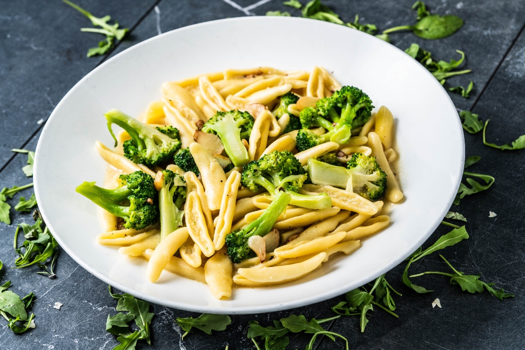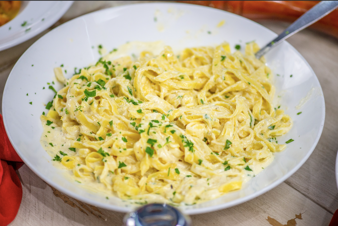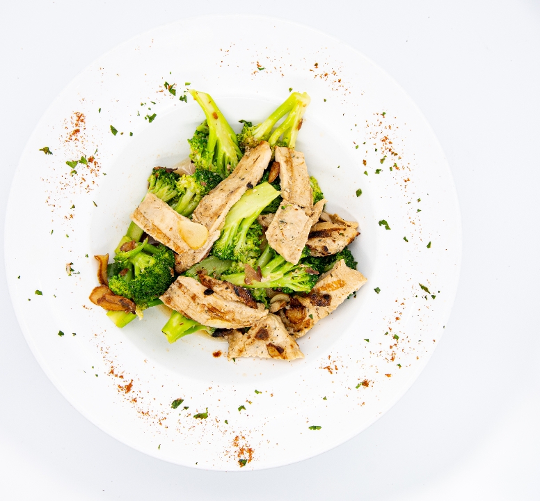 Fettuccine, grilled chicken, broccoli, and alfredo sauce