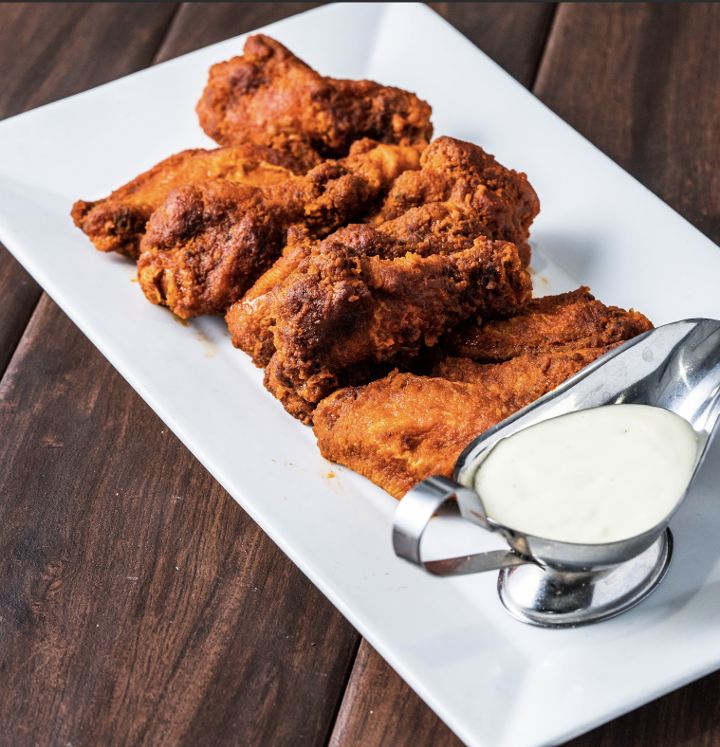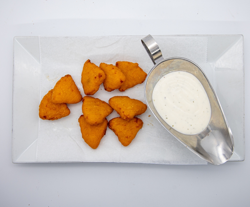 5 mozzarella sticks tossed in buffalo sauce with a side of blue cheese