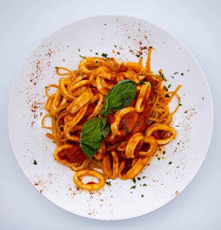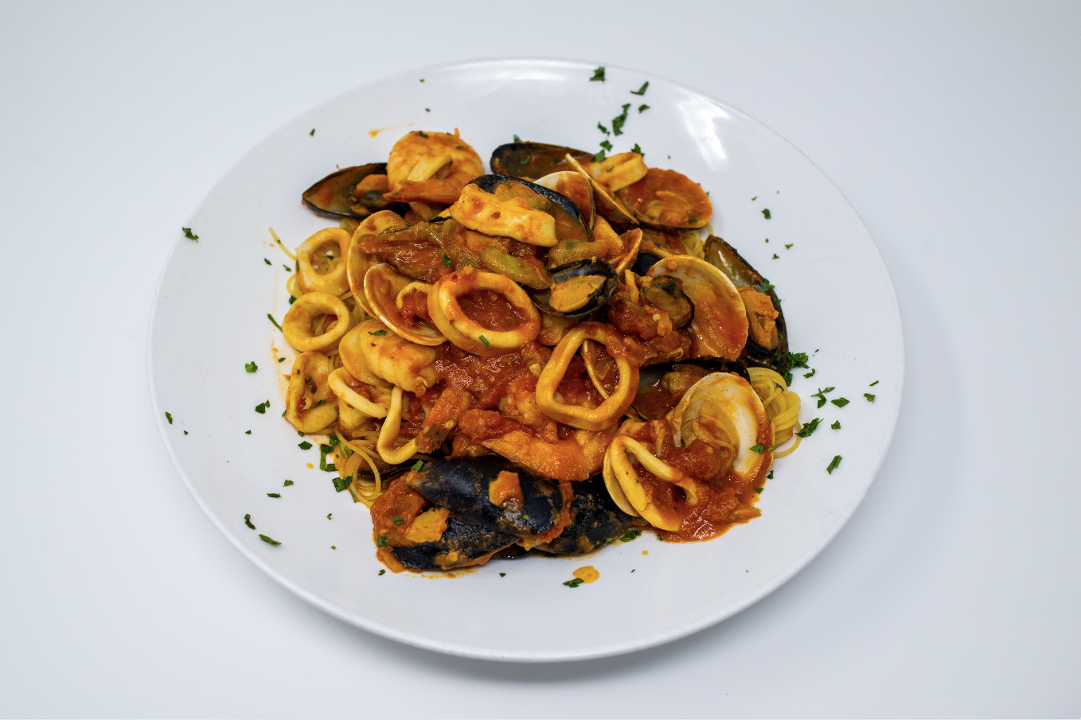 Shrimp, clams, mussels, calamari, scungilli over linguine