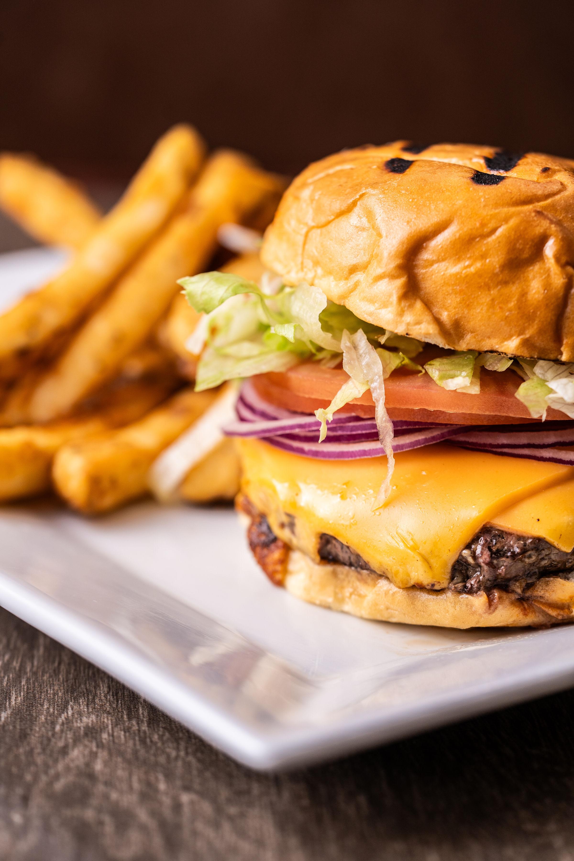 8 oz Certified Angus Beef burger with American cheese, lettuce, tomato and onion. Served with fries