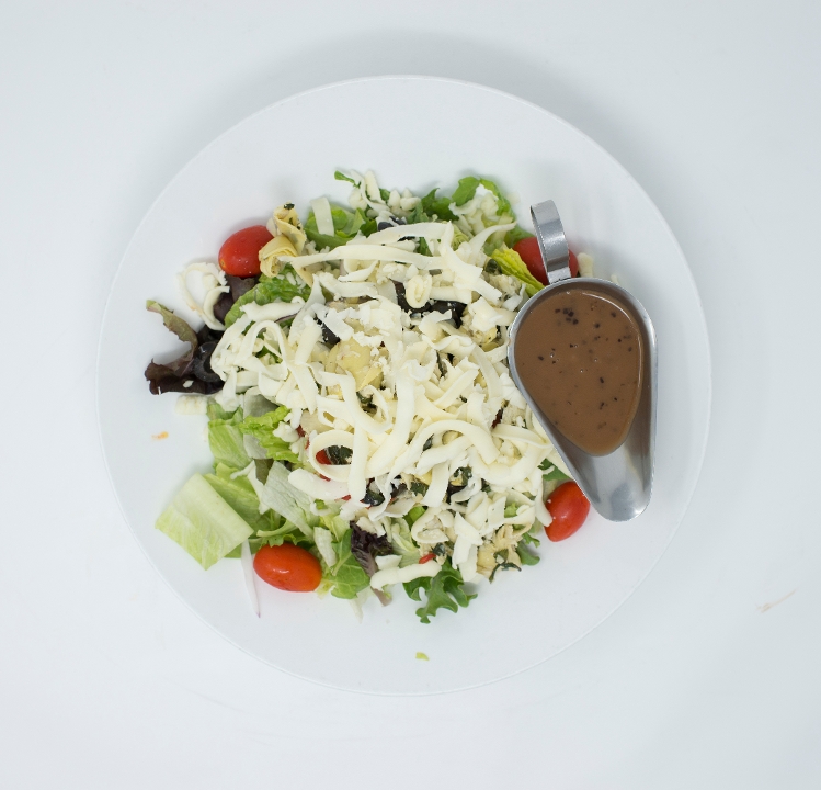 Mixed greens, roasted peppers, olives, artichokes, tomatoes, red onions, mozzarella cheese, and balsamic vinaigrette