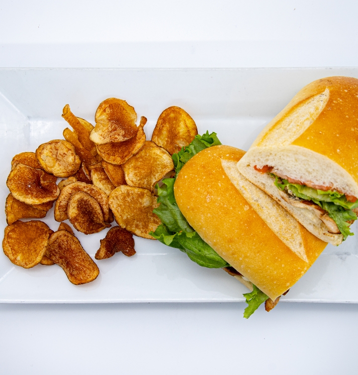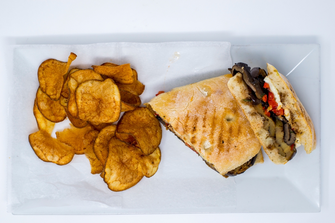 Fresh mozzarella, eggplant, portobello mushroom, roasted peppers, lettuce, tomato, and vinaigrette