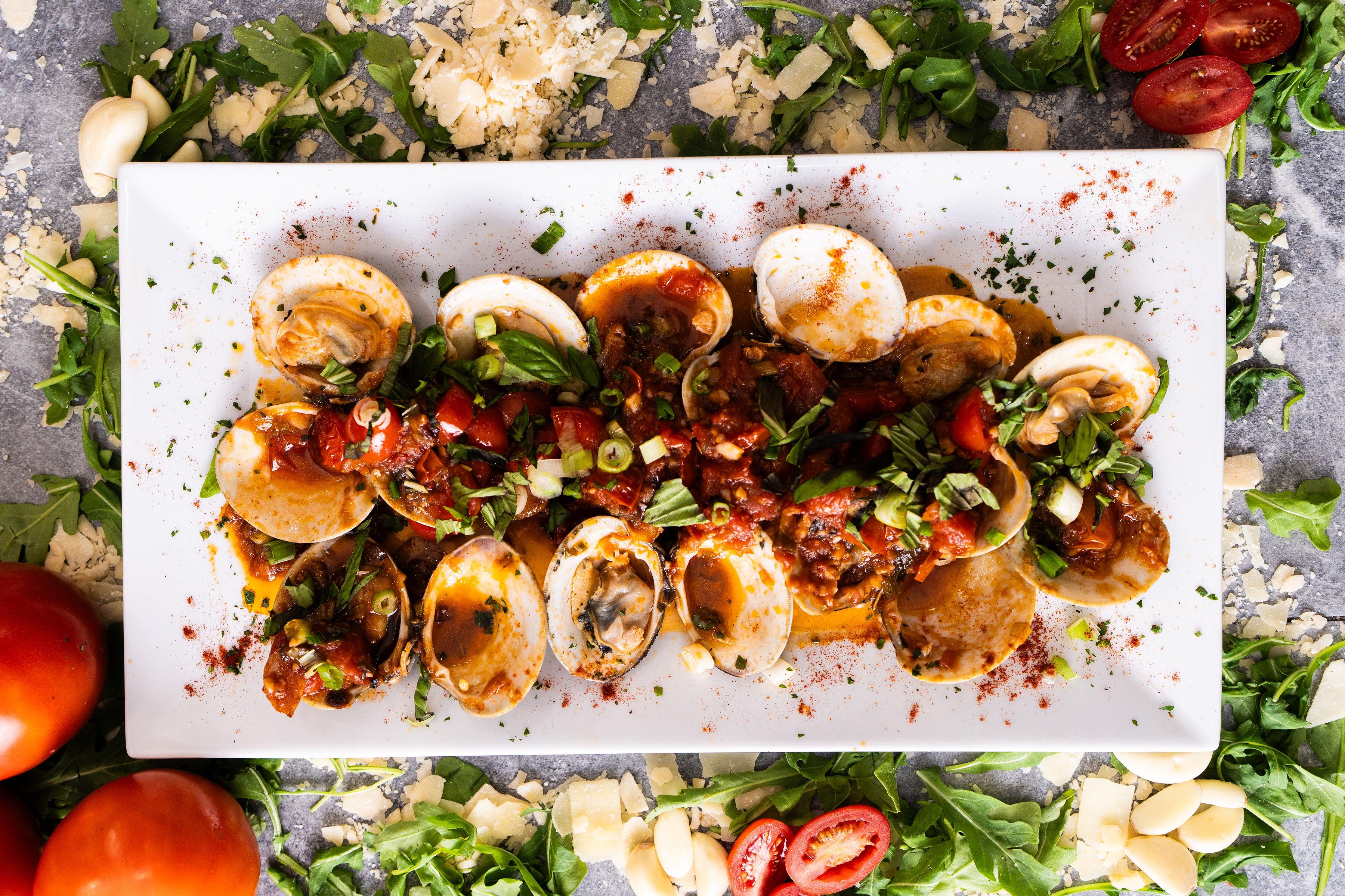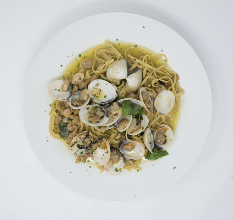 Fresh Clams (12) in Sautéed Garlic, white wine, cherry tomato sauce
