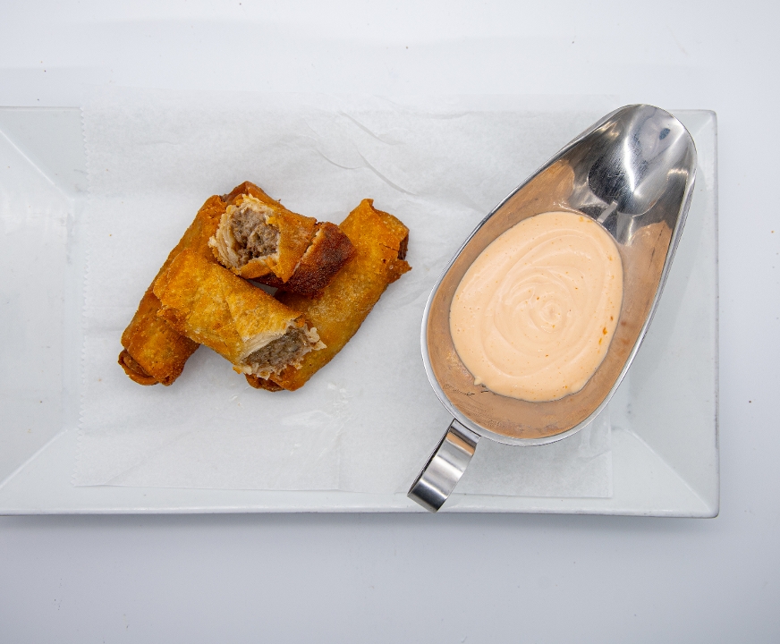 3 thinly sliced steak and melted cheese blend fried in a crispy eggroll shell, served with pink sauce