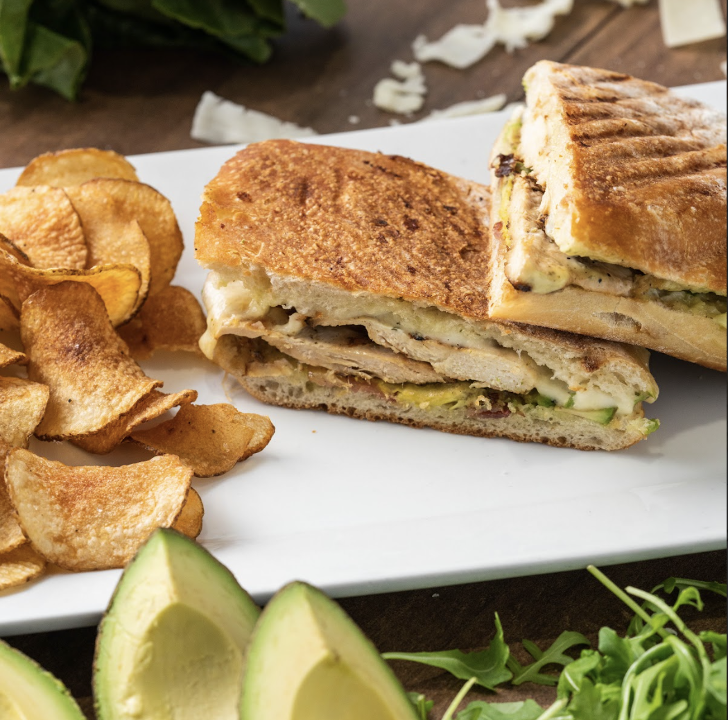 Chicken, bacon, avocado, fresh mozzarella, and pesto mayo