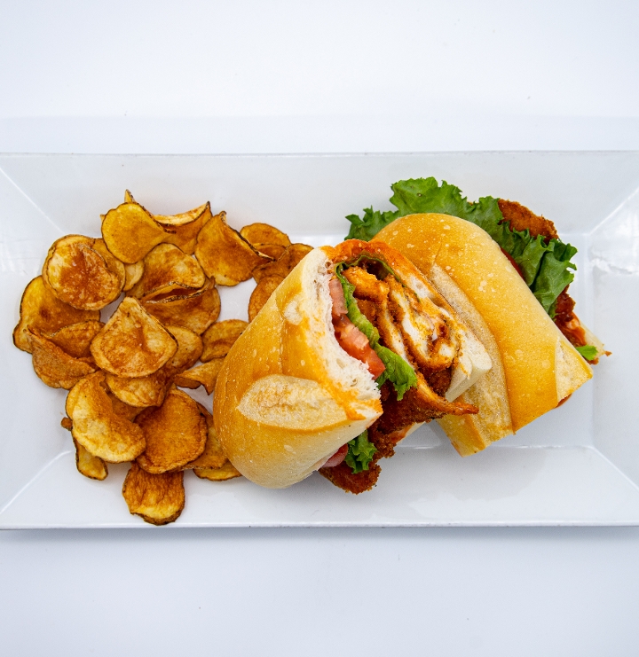Breaded buffalo chicken, lettuce, tomato, and blue cheese