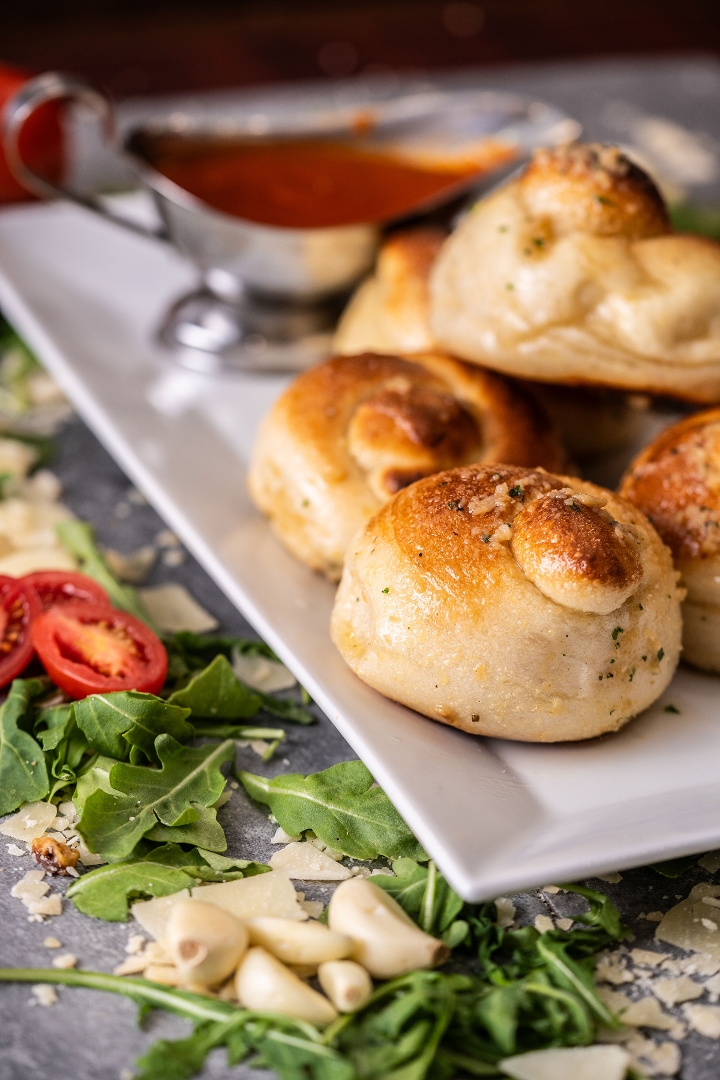 2 pieces topped with marinara, shaved parm, and melted mozzarella