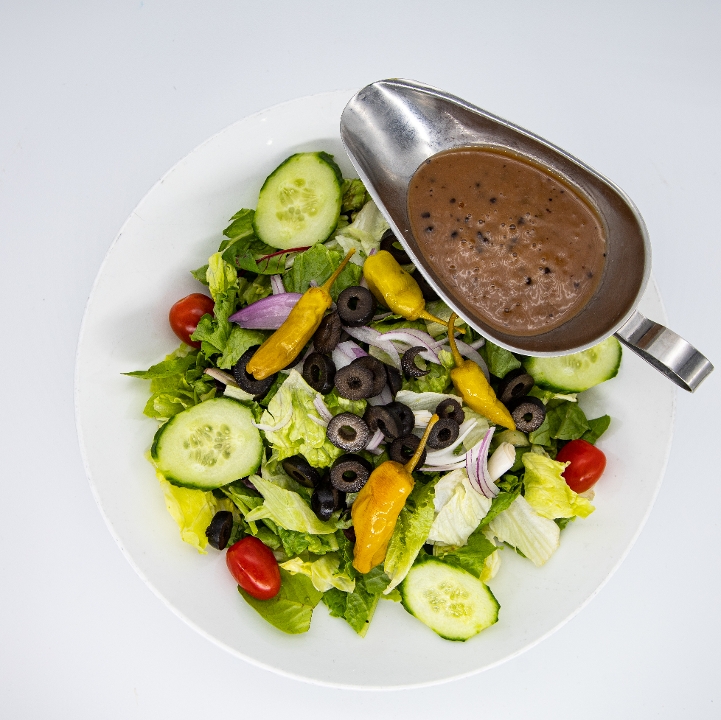 Mixed greens with tomatoes, olives, cucumbers, and red onions. Served with balsamic vinaigrette.